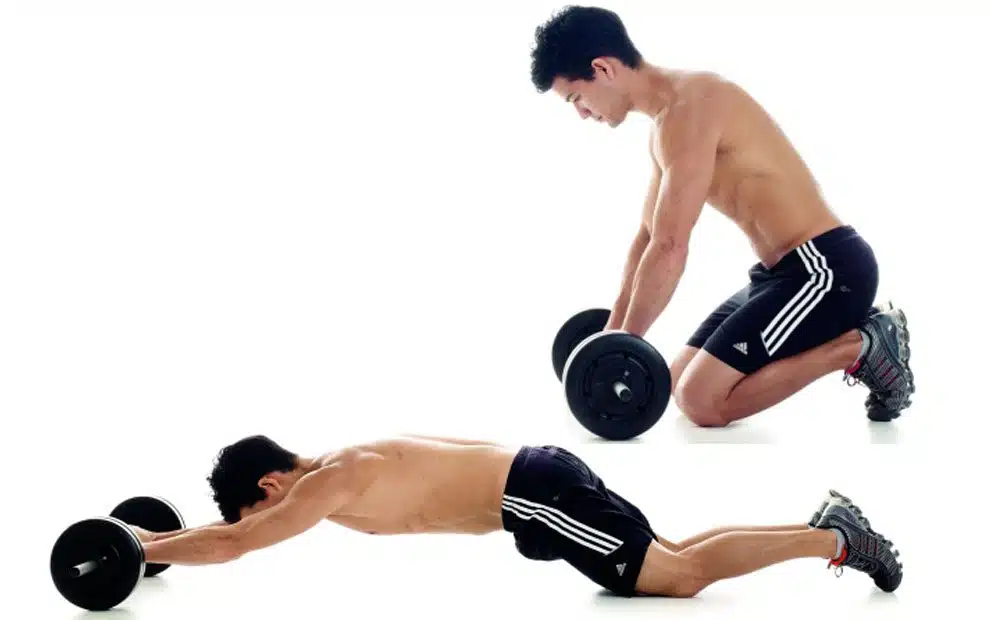 مراحل اولیه این حرکت دقیقا شبیه حرکت پوش آپ است با این تفاوت که ساق پاها به هم قفل می شود و باید روی زانو بلند شوید. در این حالت تلاش کنید تا بدون خوابیدن روی زمین، با دست ها، حرکت بالا و پایین انجام دهید.